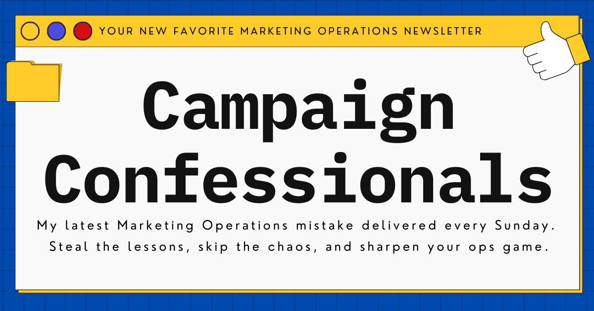 A weekly newsletter where I share one of my very own Marketing Ops fails each week. It’s part therapy session and part tactical teardown so come for the postmortem and stay for the treasure trove of actionable tips.